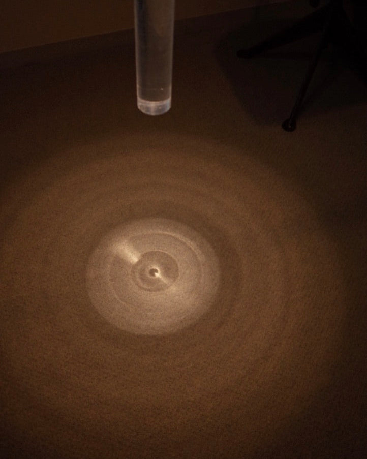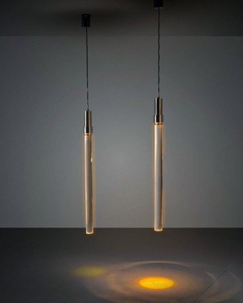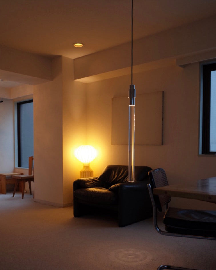 "Conductor of Light" is a sculptural, minimalist lighting piece designed by Italian architect and designer Angelo Mangiarotti.