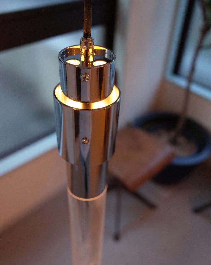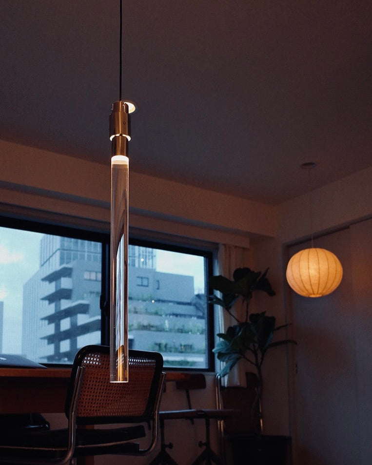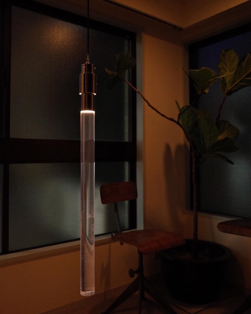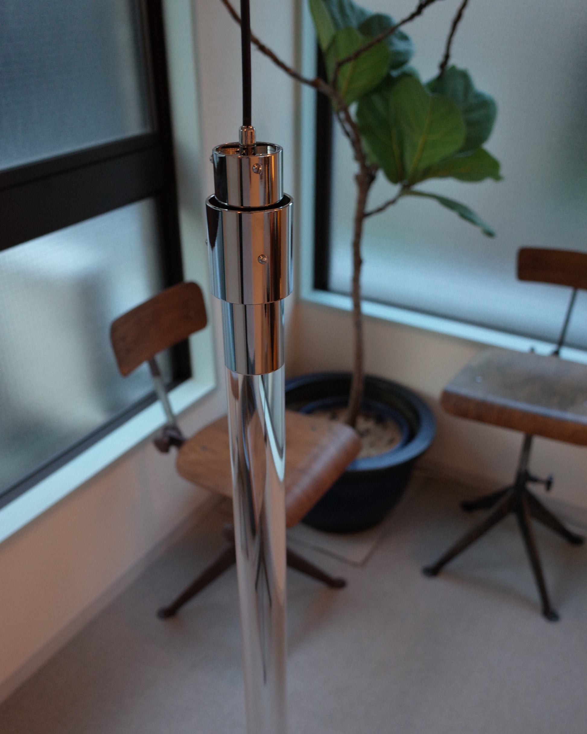The unique structure combines a metal and chrome-finished structure with an acrylic light guide (a transparent material similar to optical fiber), and the light is diffused and guided, creating the illusion of a line being drawn in space.