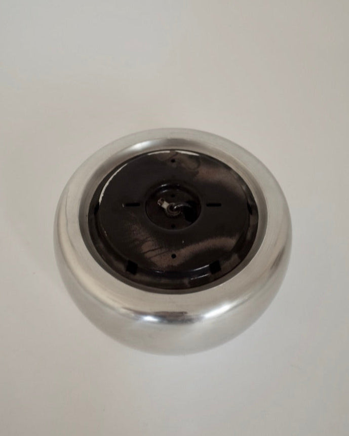 シンプルでありながら大胆な造形が特徴で、半球状のリフレクターと円錐形のパンチングスチールステムを組み合わせ、光を効果的に拡散しながら空間に強い存在感を与えます。金属的な素材感と機能的な美しさが見事に調和したこのモデルは、モダンインテリアにおいても今なお高い評価を受ける名作照明です。
