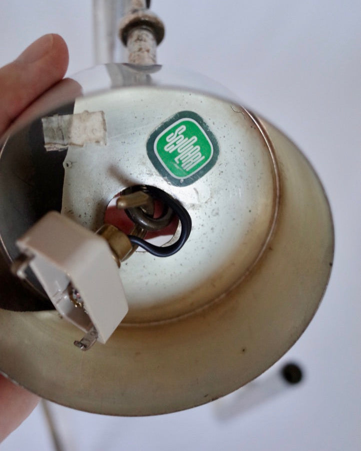 本作 Model 105(1970年代製)は、Sciolariが幾何学的構造と素材の反射効果を巧みに活かした代表的なシリーズのひとつ。円形に配置されたチューブ状のアームは、クローム仕上げによってミラーのように光を映し出し、建築的なリズムと光の陰影を生み出します。これは、同時代に活躍した Stilnovo や Arredoluce の洗練された機能主義とは一線を画し、彫刻的かつ演劇的な要素を強く持つ点で際立っています。