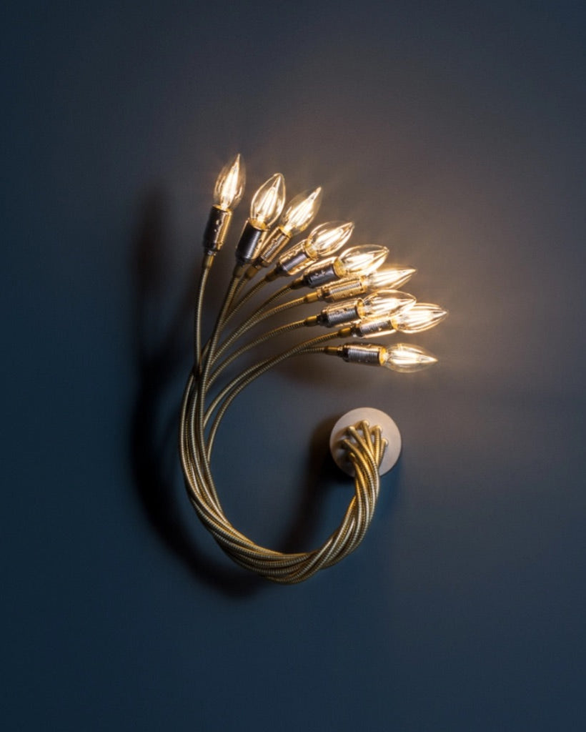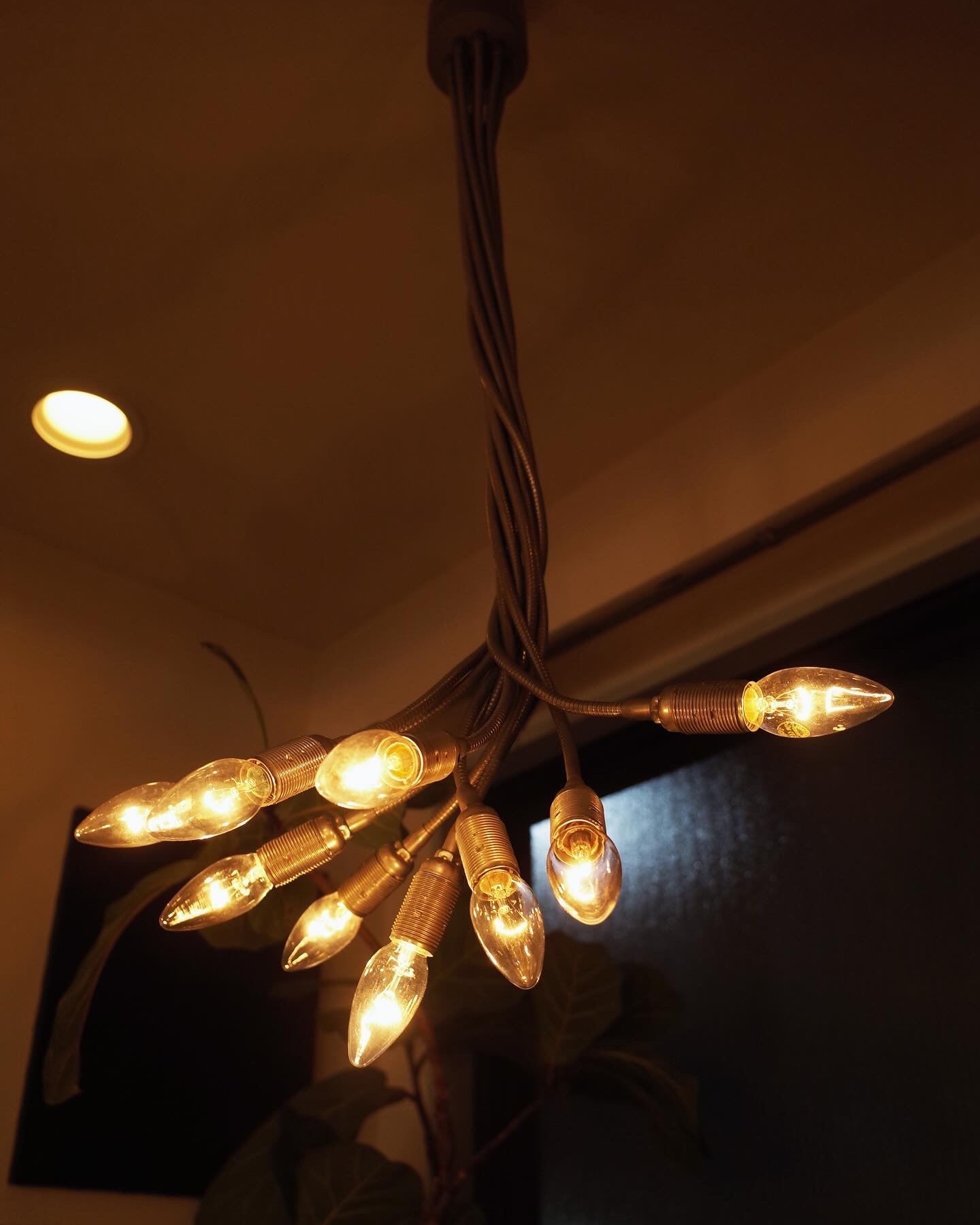9本のアームが自由に曲がり、光の枝のように空間を描きます。ウォールランプ、シーリングランプとしてアートピースのような存在感ある作品です。