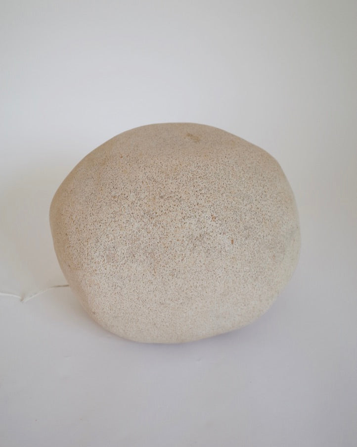 ガラスファイバーと大理石の粉を混ぜた素材で成形され、点灯すると柔らかく温かみのある光を放ち、空間に彫刻的な存在感を与えます。