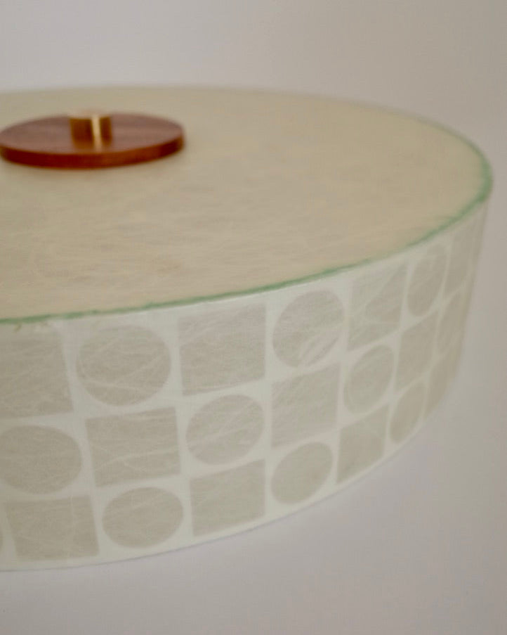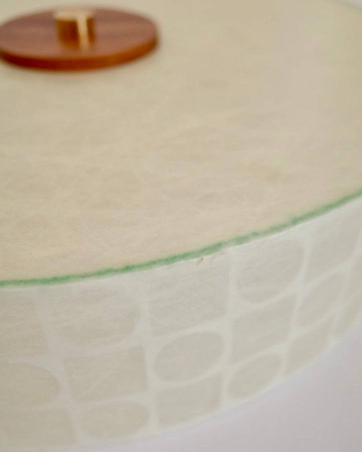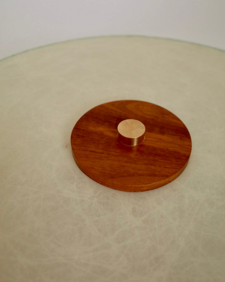 側面には幾何学的なパターンが配されており、点灯時にはリズミカルな陰影を生み出し、ミッドセンチュリーらしいグラフィカルな表情も魅力の一つです。
