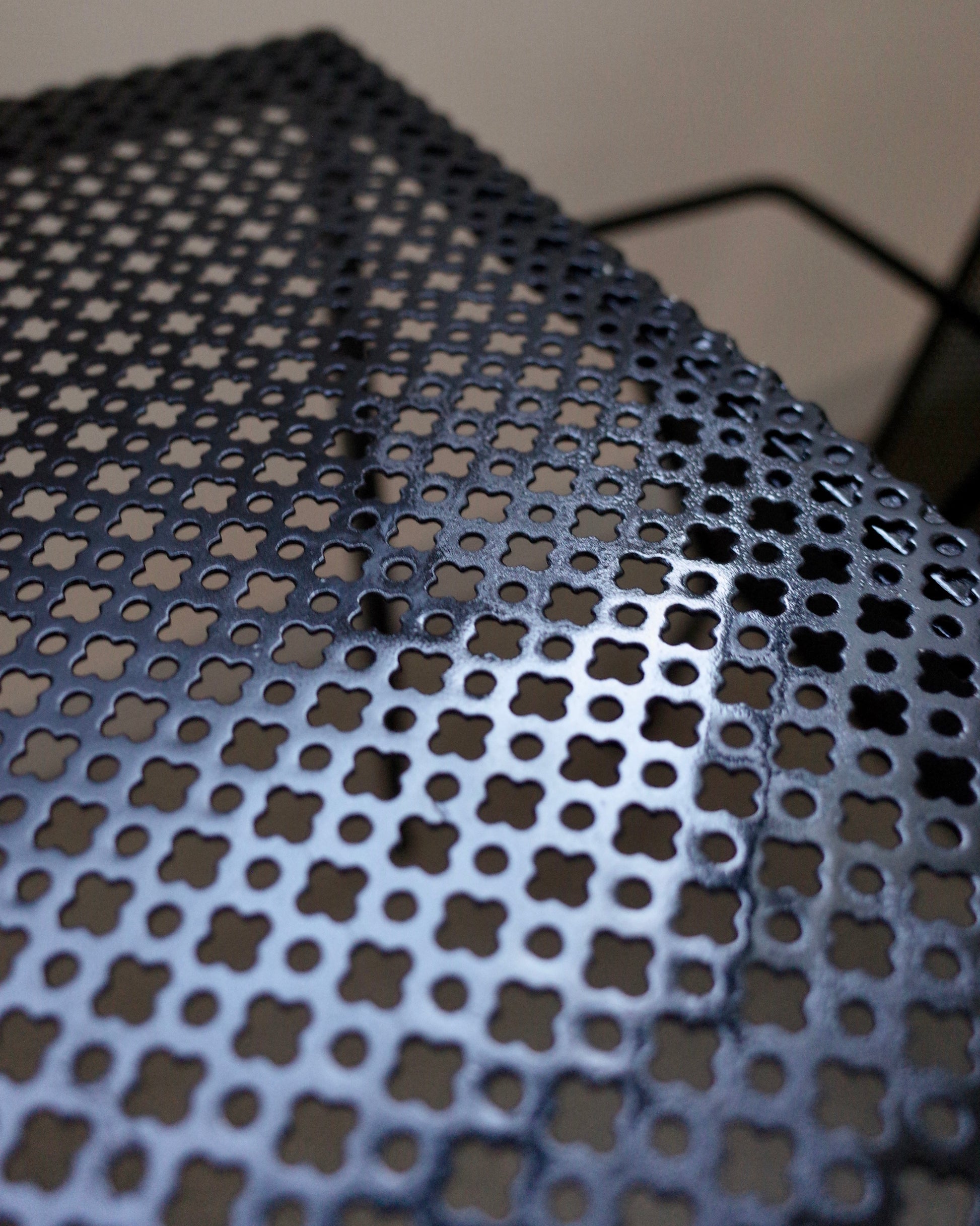 マテゴ独自の技法「Rigitulle(リジチュール)」と呼ばれるパンチングメタルと細身のフレームによって構成され、工業的な素材でありながら軽やかで彫刻的な美しさを備えています。